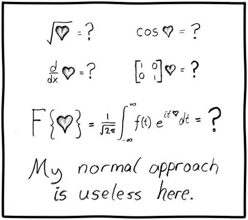 वैसे मैं इन सब को मॉडल कर लूँगा ! असली डर तो तुम्हारे बाउंड्री कंडीशंस से है। मुझे पता है कि अपने रिश्ते के समीकरणों का क्लोज फॉर्म सोल्युशन मिलना मुश्किल है लेकिन तुम बस हाँ कह दो और फिर देखो ये क्या कोई नेवियर स्टॉक्स या रिमान हाइपोथेसिस है जो मैं हल ना कर पाऊँगा!